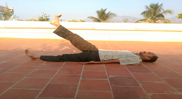 படுத்த நிலையில் இடது கால் தரையில் இருக்கட்டும். வலது காலை மட்டும் ஒரு அடி உயரத்தில் தூக்கி நிறுத்தவும். பிறகு 20 எண்ணும் வரை இருந்து காலை கீழே மெதுவாக வைக்கவும். பின்னா் இடதுகாலை தூக்கவும். இதுபோல் மாற்றி மாற்றி 4 தடவைகள் செய்யவும்.