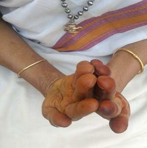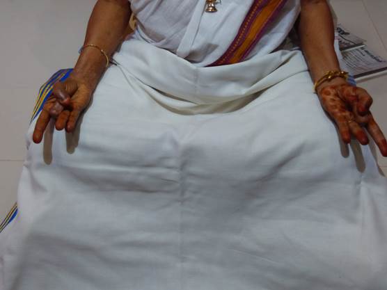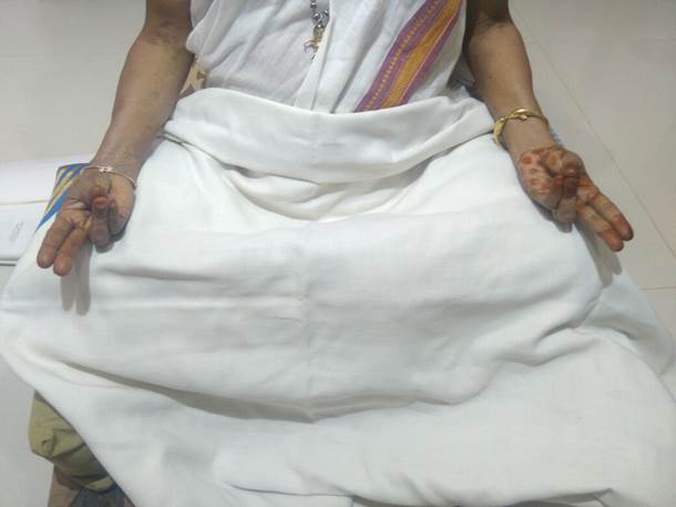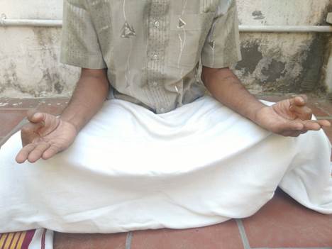 மார்புக்கு முன்பாக இருகைகளின் புறப்பகுதிகளை ஒன்றோடோன்று தொடுமாறு வைக்கவும். கட்டைவிரல் ஆள்காட்டி விரலுடன் சேர்த்து வைக்கவும். மற்ற நான்கு விரல்கள் ஒன்றோடோன்று தொடவேண்டும். மூன்று வேளைகள் 15 நிமிடம் என 45 நாட்கள் செய்யவும்