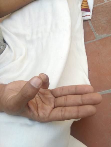 நான்கு விரல்களையும் பெருவிரலோடு இணைத்து விரல்கள் வான் நோக்கி வைக்கவும்.