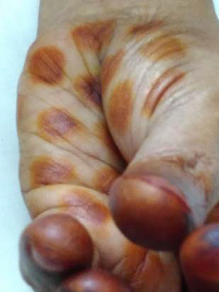 நடுவிரல், மோதிர விரல் ஆகிய இரு விரல்களின் மேல்பகுதியில் உள்ள முதல் குறுக்குக் கோட்டை கட்டைவிரலின் நுனியால் சிறிது அழுத்தத்துடன் தொடவும்.